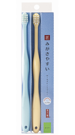 みがきやすい歯ブラシ 極コンパクト ( ふつう・先細毛タイプ )2本組 ( ブルー・イエロー )