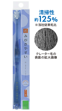 みがきやすい歯ブラシ 極コンパクトクレーター毛 ( ふつう・先細毛タイプ )ブルー